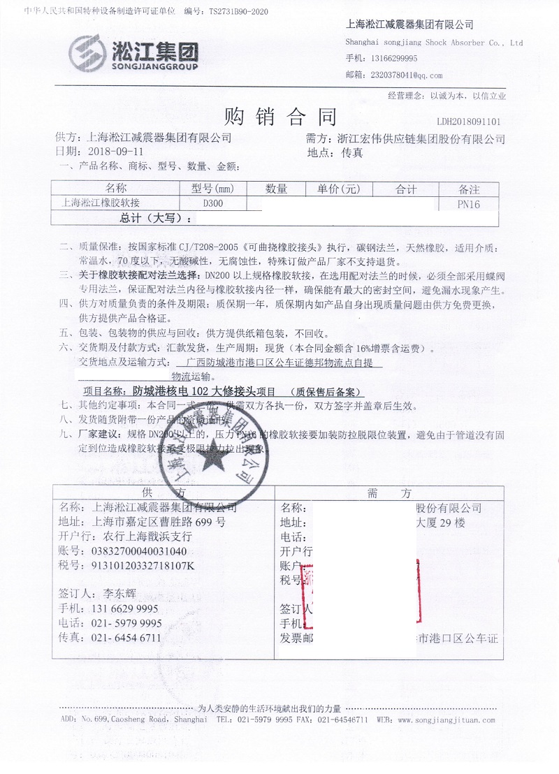 上海淞江减震器集团有限公司介绍:【防城港核电102大修接头项目】橡胶挠性接头合同案例信息,淞江集团为诸多核电站项目提供橡胶接头产品,过硬的产品质量和优质的服务被信赖。以下是为防城港核电提供橡胶接头介绍。